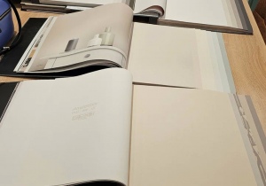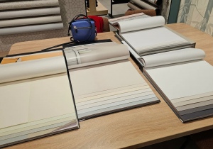 Удобные большие столы и стулья ,чтобы листать каталоги с комфортом.