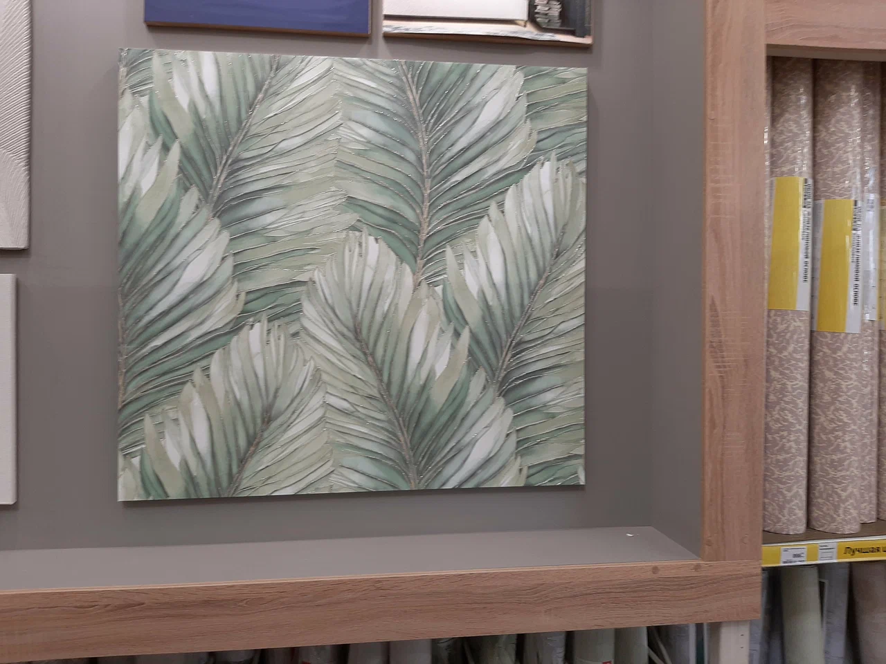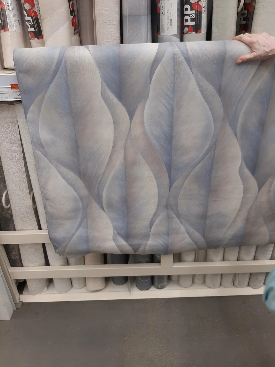 Хороший выбор обоев, все образцы отлично освещены, купили обои в большую комнату по 4850руб. за рулон-дорого но красиво