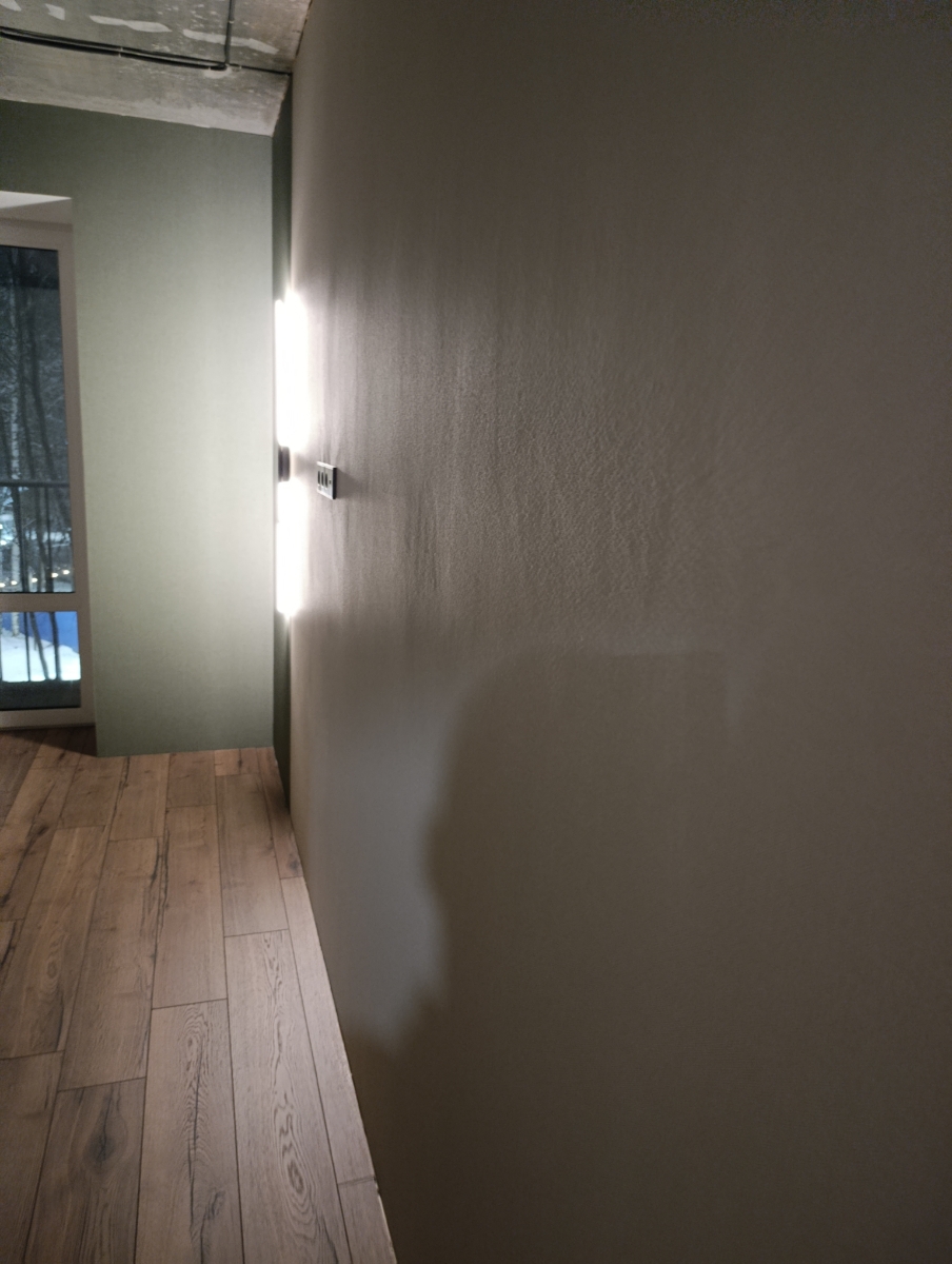 обои выглядят хорошо, на светлых стыки не заметны, но тонкие видны неровности стен