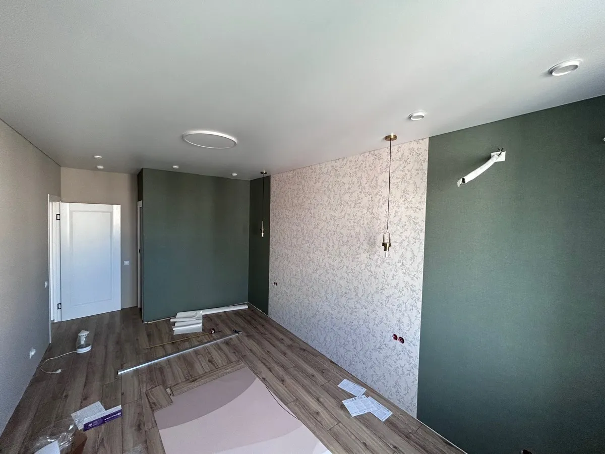 Из трех расцветок: мокко, зеленые и кремовые, зеленые клеились легче всего и стыки получились совсем незаметные (при поклейке внахлест с разрезом). Цвет и фактура - любовь!
