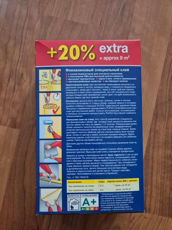 Просто идеальный клей для поклейки флизелиновых обоев. расход клея небольшой. Поклеила комнату в 25 квадратов. В коробке еще четверть осталось. Сейчас докупила клей на вторую комнату. После разведения он приобретает синий оттенок, это очень удобно, для контроля нанесении его на стену. При высыхании становится прозрачным. Работать с ним одно удовольствие. Рекомендую!