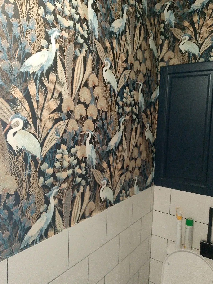 мы вумерли - как красиво! обои были куплены в самом начале ремонта и поклеяны в конце. начали переживать что получиться , не темно ли. Но когда поклеили- это восторг! и тактильно они какие то невероятные и размер рисунка тоже необычный.