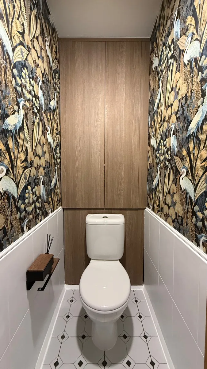 Брала обои для санузла, нужно было минимальными средствами преобразить убитый туалет