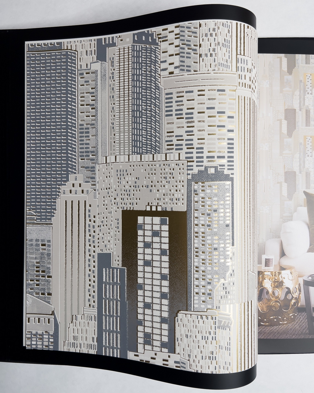 Silver — коллекция флизелиновых обоев от Bruno Zoff. Красота принтов подчеркивается с помощью металлизированного нижнего слоя, на который и наносится рисунок. Восточный орнамент «решетка», дамаск, городские пейзажи и абстрактный рисунок, напоминающий срез минерала, выглядят особенно эффектно в присутствии серебряного и золотого сияния.