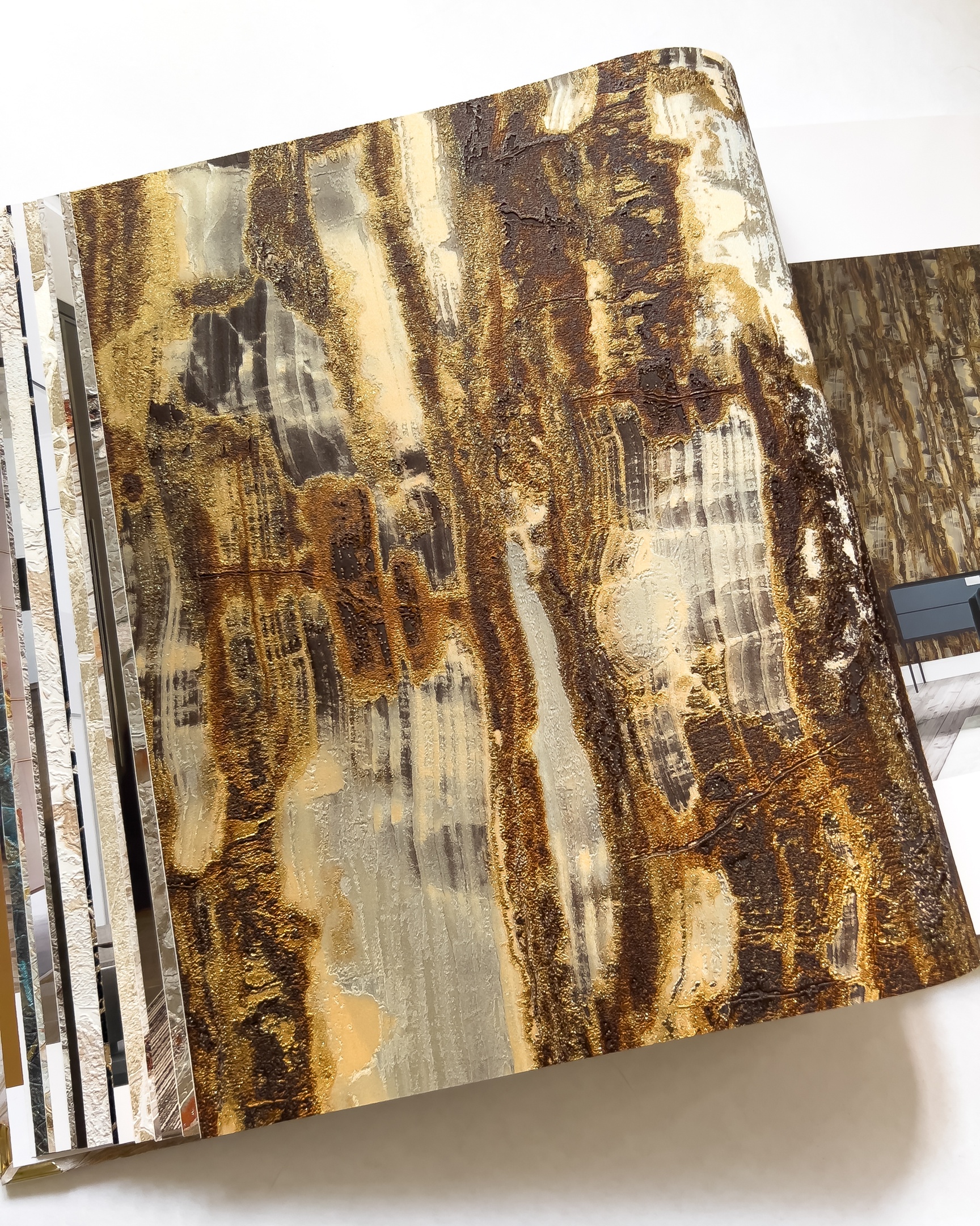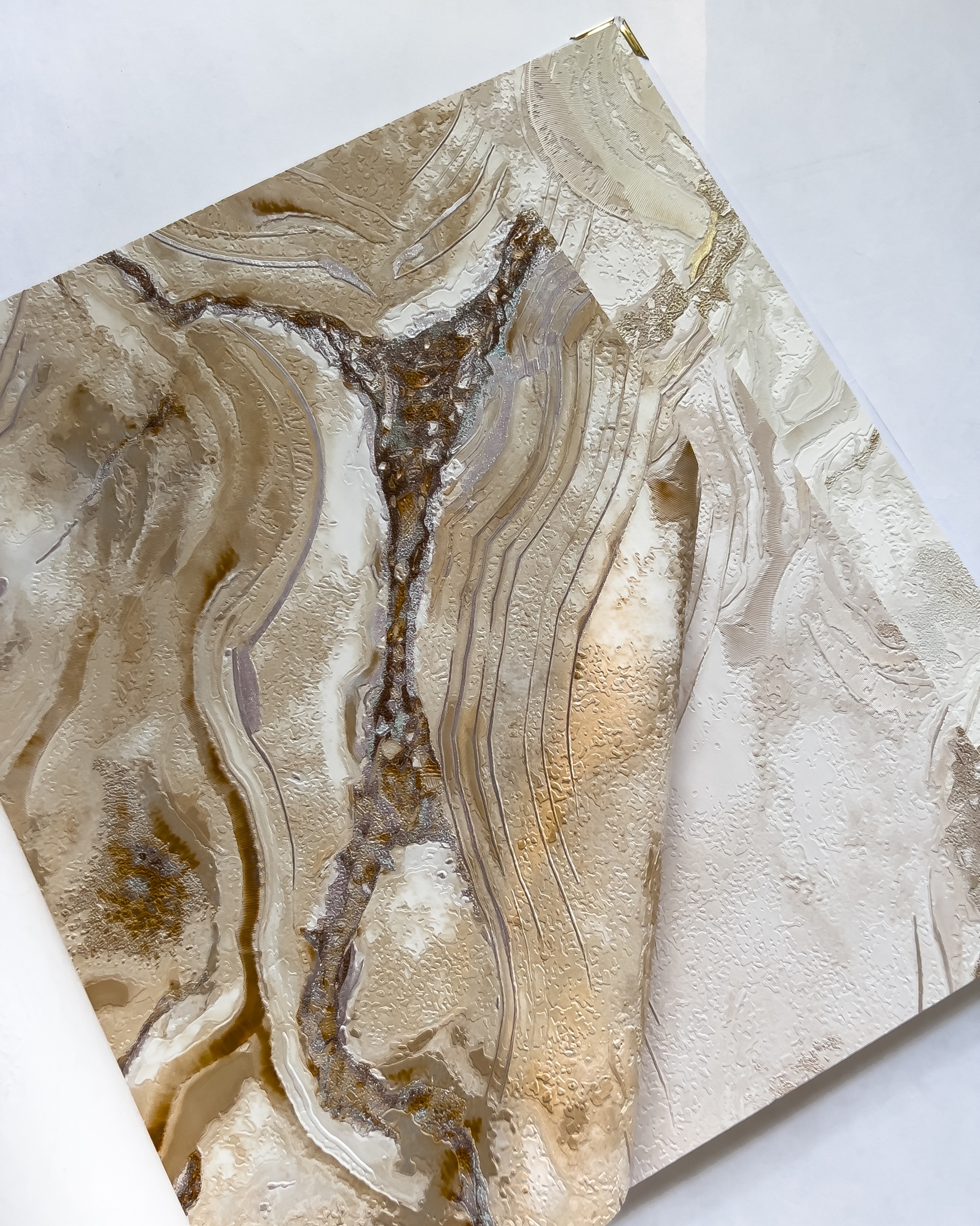 Carrara 3 — сочинение от фабрики Decori Decori на тему горных пород. Каррара — итальянский город, в котором добывают один из самых ценных видов мрамора в мире. Вдохновившись красотой камня, художники создали обои с ещё более богатой фактурой, сложным рисунком и сверкающими переливами. Минералы — продолжающийся тренд в дизайне интерьера и новая коллекция отлично вписывается в его рамки.
