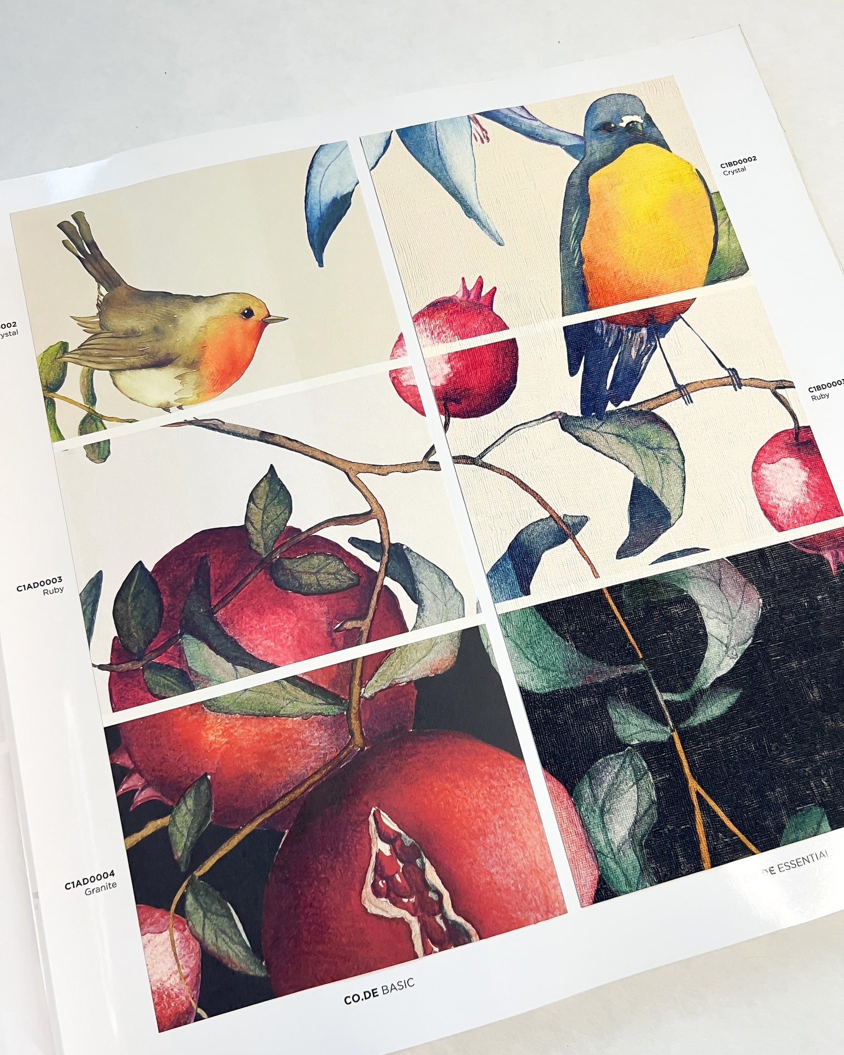 У итальянского бренда Jannelli & Volpi появилась коллекция дизайнерских панно. В каталоге 14 принтов, каждый из которых существует в разных фактурах и цветовых решениях. Рисунки в каталоге разнообразны: сложный узор из растений и попугаев, композиция с сочными гранатами, акварельные лесные жители, абстрактное изображение и миловидные домики.
