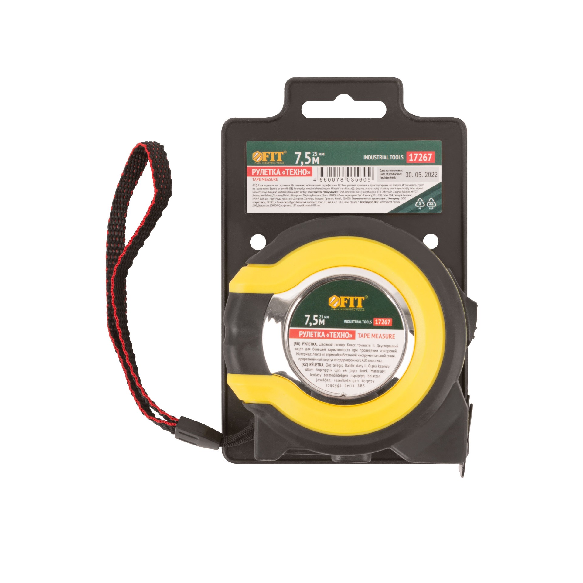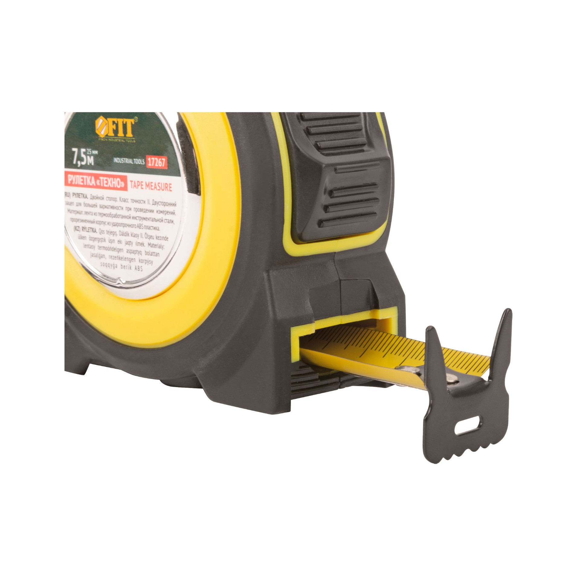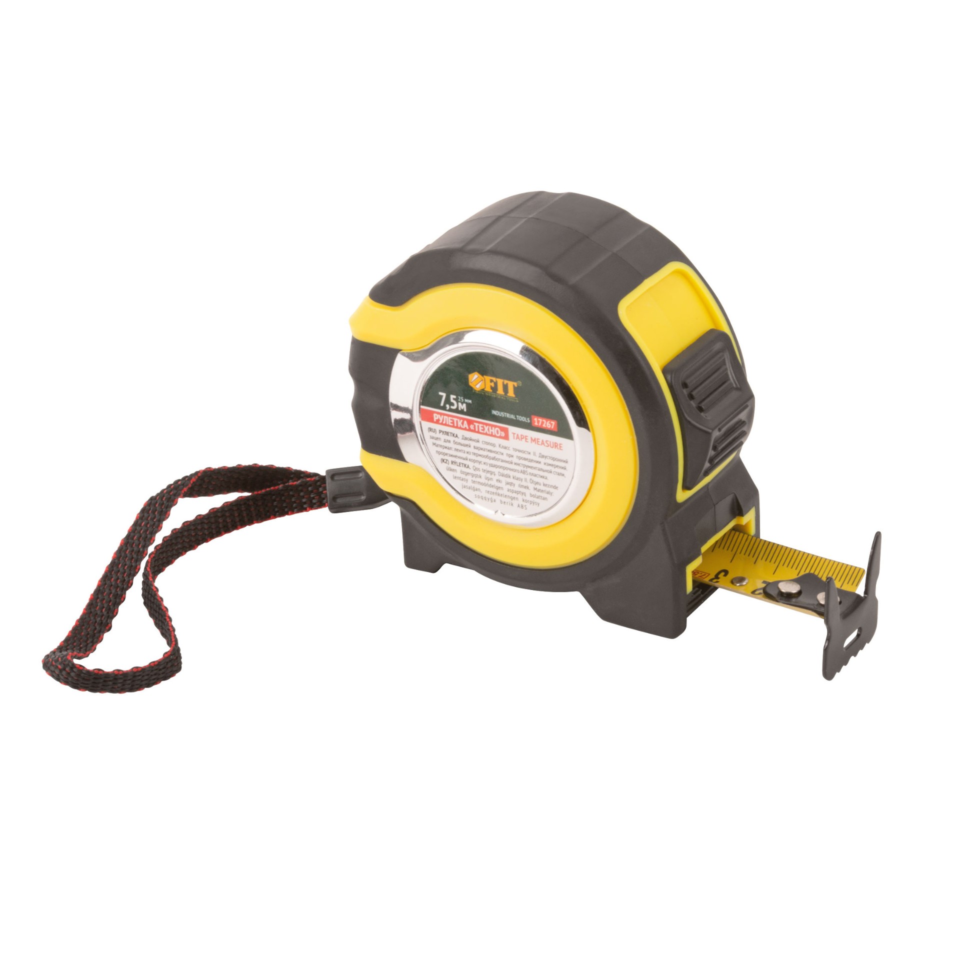 Рулетка Fit прорезиненный корпус, двойной стопор «Техно» 7.5 м x 25 мм