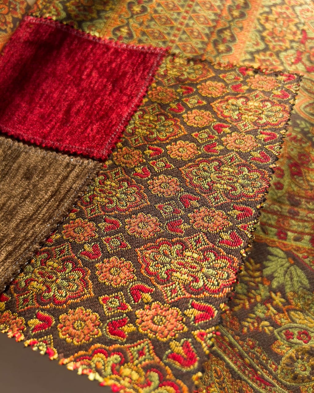 Etna — коллекция текстиля в этническом стиле от 5 Avenue. Ткани представляют собой завораживающий микс из мавританских, персидских и марокканских орнаментов. Каждый узор сплетен из множества мелких деталей, которые заставляют снова и снова рассматривать красочные полотна.