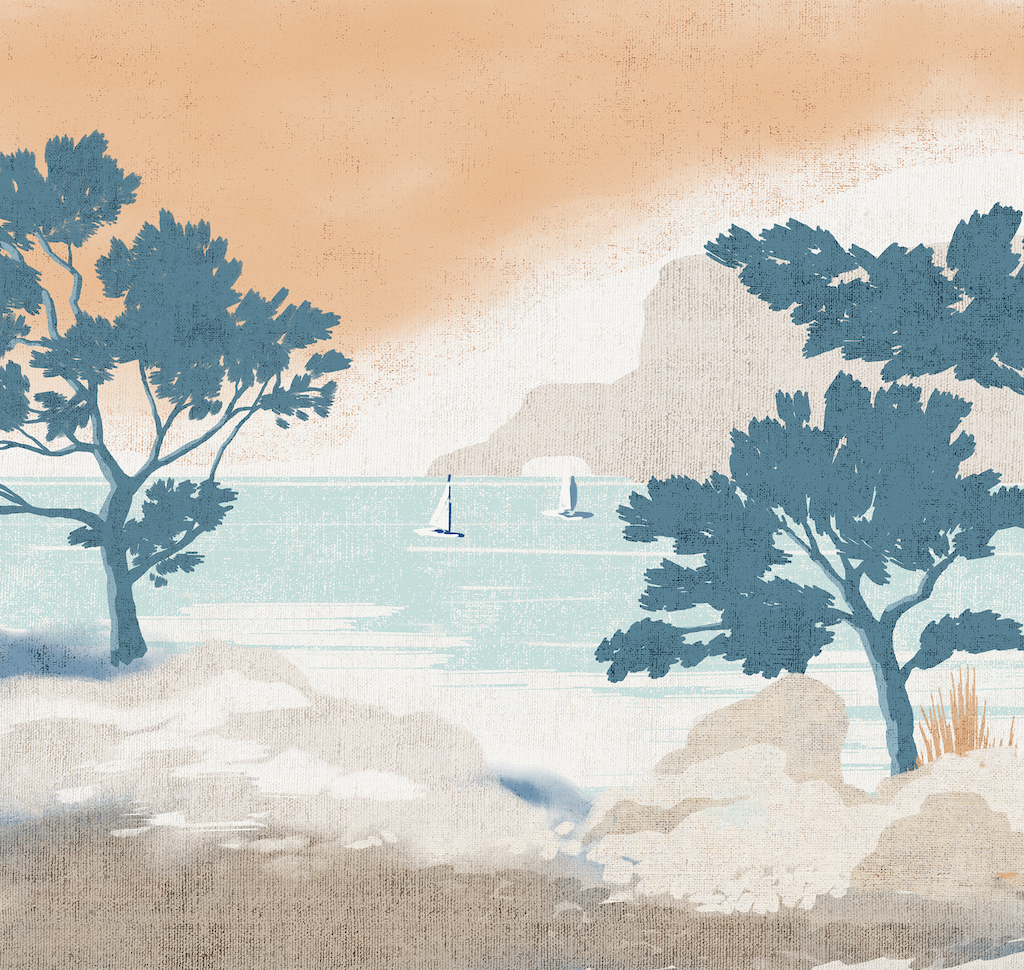 • РисунокПляж, Пейзаж, Деревья, Корабли