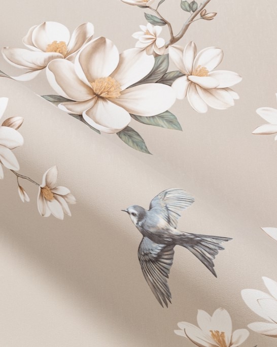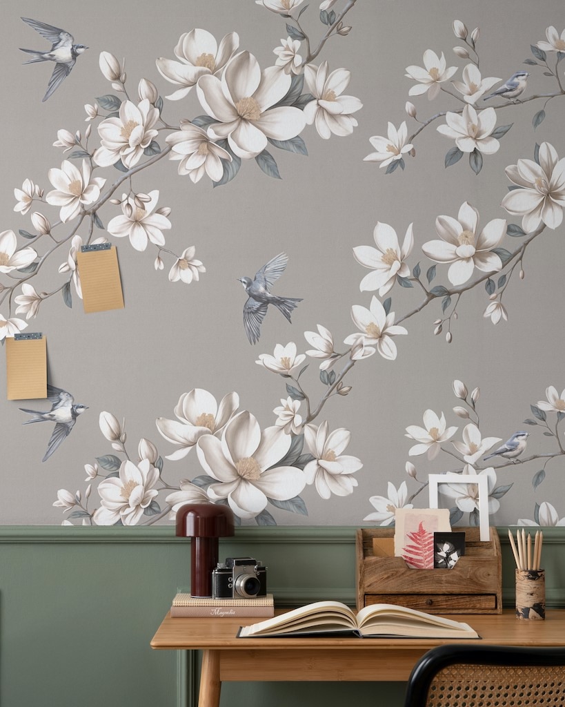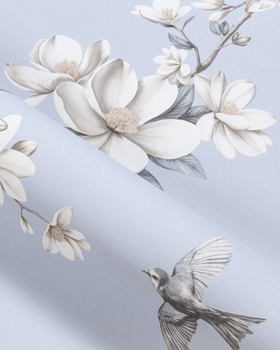 Magnolia — коллекция от бренда Palitra Life. Молочные лепестки магнолии и легкость птичьего полета наполнят комнату спокойным и радостным настроением. В наши обойные центры уже приехали пять универсальных оттенков вместе с компаньонами.