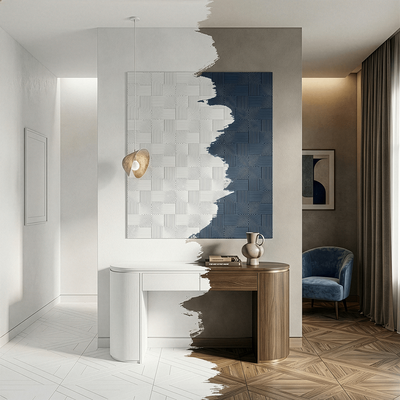 Сюда приятно зайти и здесь удобно выбирать. Все товары распределены по категориям и аккуратно расставлены. Обои, лепной декор, краска, фотообои, фрески, декоративные элементы, текстиль, напольные покрытия, плитка, клей и инструмент — все находится на своем заранее подготовленном месте.