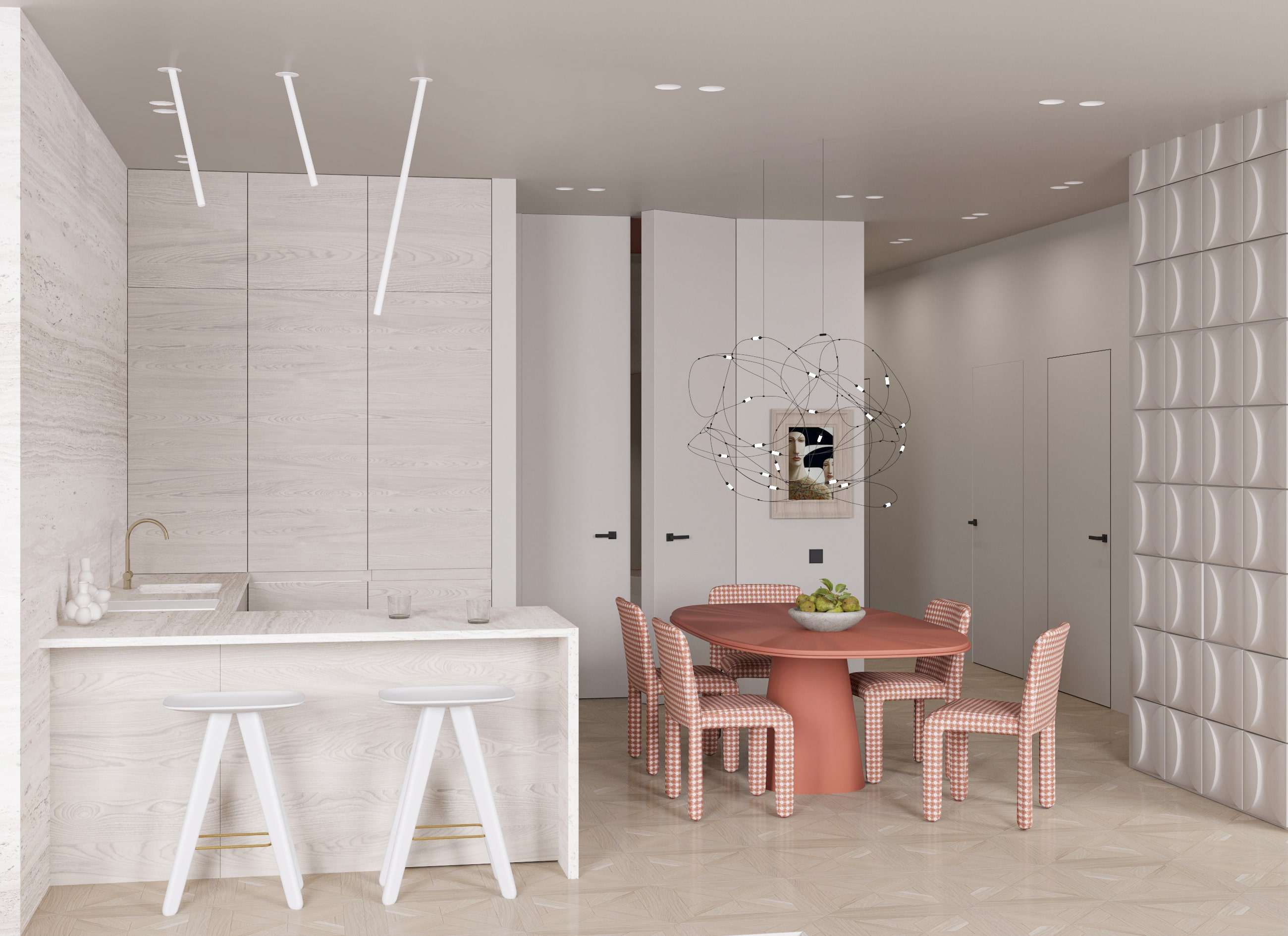 Свой проект Варвара назвала Fiume nero. В основе работы лежит минимализм и белый цвет, дополненные арт-объектами и сложными формами. Мы были рады поздравить Варвару с победой и подарить ей полезные подарки.