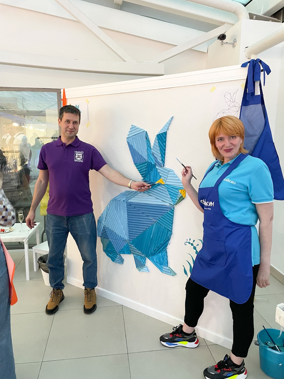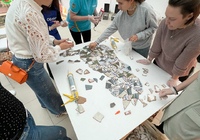 Наши участницы создали два интерьерных панно: кошечку из керамической плитки и зайца из фрагментов лепного декора Orac Decor. Получились замечательные объемные работы, благодаря которым наши мастерицы не только погрузились в творческий процесс, но и отработали навык монтажа небольших элементов.