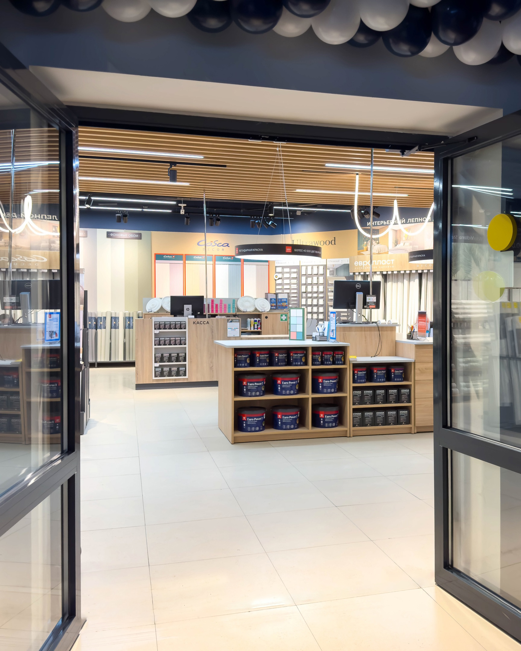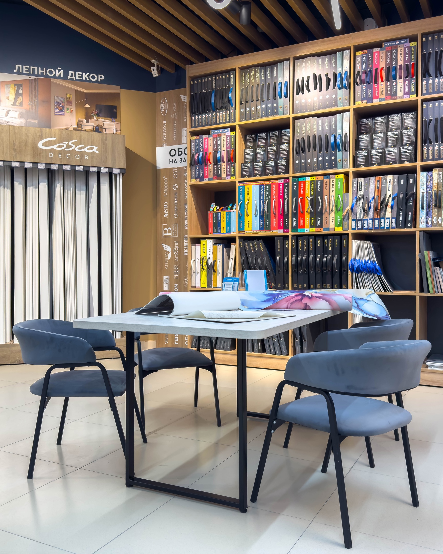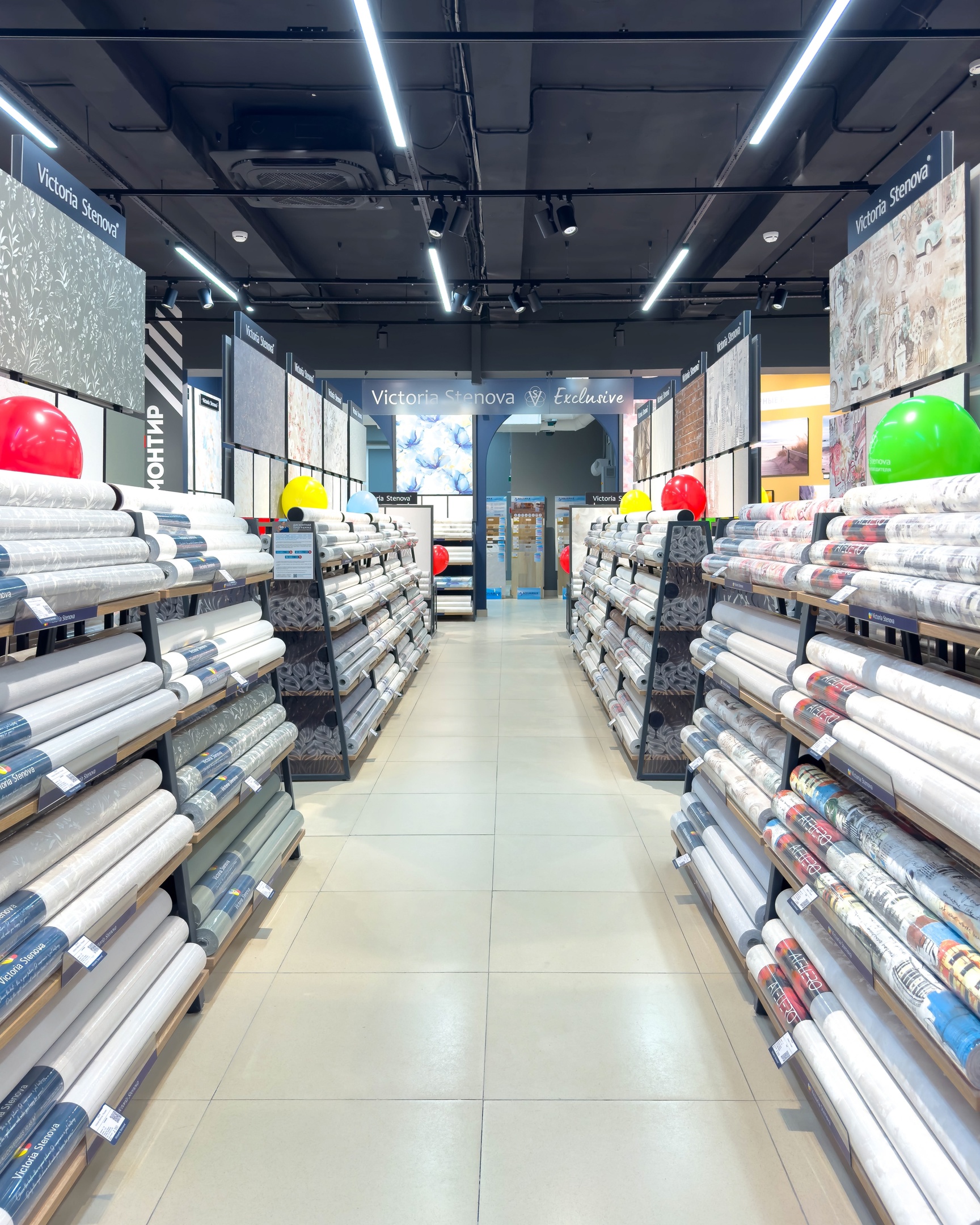 Несмотря на название, в магазине представлены не только обои Victoria Stenova: здесь же можно выбрать напольные покрытия, краску, лепной декор, интерьерные картины, клей и инструмент.