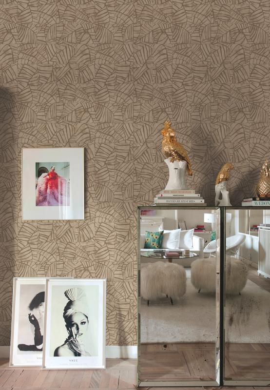 Обои из коллекции легко сочетать друг с другом: выберите только фоновые обои с фактурой грубой ткани или добавьте акцент с рисунком пальмовых листьев. Вам не нужно быть дизайнером, чтобы всё получилось. И не забудьте дополнить интерьер живыми растениями.