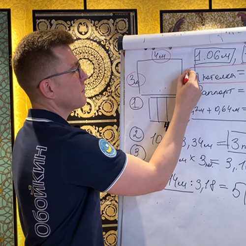 Чтобы определить необходимое количество рулонов, можно воспользоваться и специальными таблицами, которые присутствуют в торговых залах Сети «Обойкин». При этом следует учитывать, что в них дается примерный расчет. Всегда рекомендуйте покупателям помощь в пересчете, с учетом особенностей планировки комнаты.