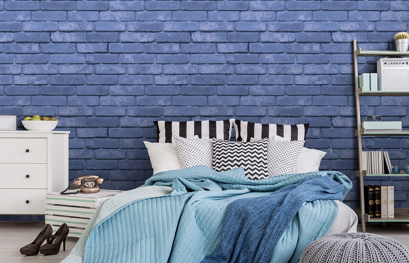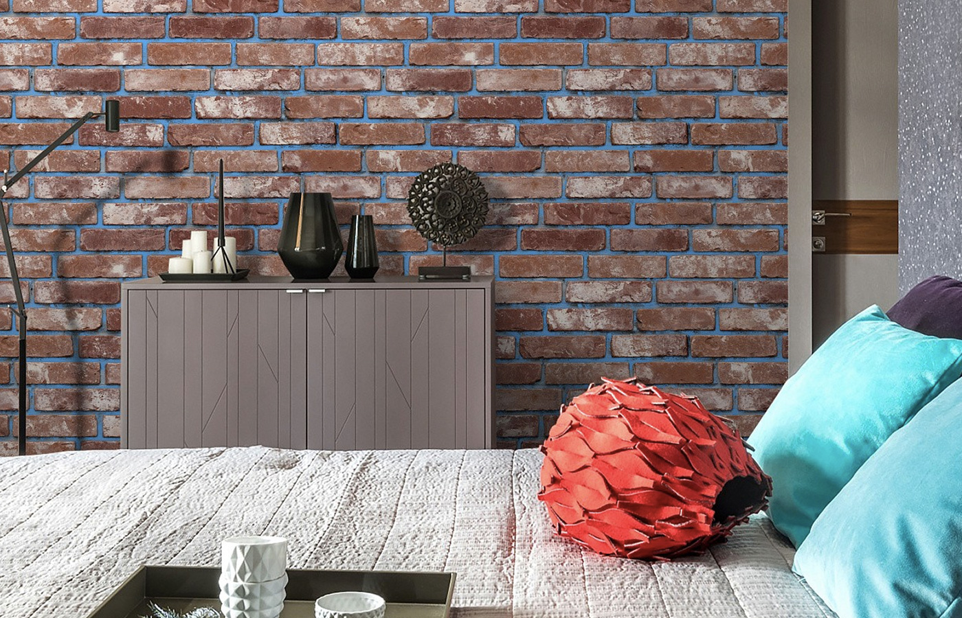 В последнее время, обои с кирпичами не всегда выглядят реалистично. Они могут быть яркими, схематичными, с граффити и геометрическим рисунком.
